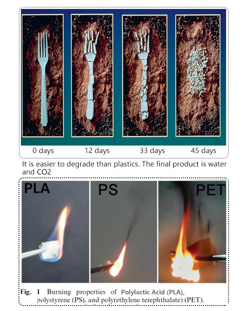 The degradation rate of PLA under landfill conditions is slow, generally takes 2-5 years, but the degradation products neither pollute the groundwater nor destroy the plant growth, there will be no waste of cultivated land, and eventually it is still fully degraded.